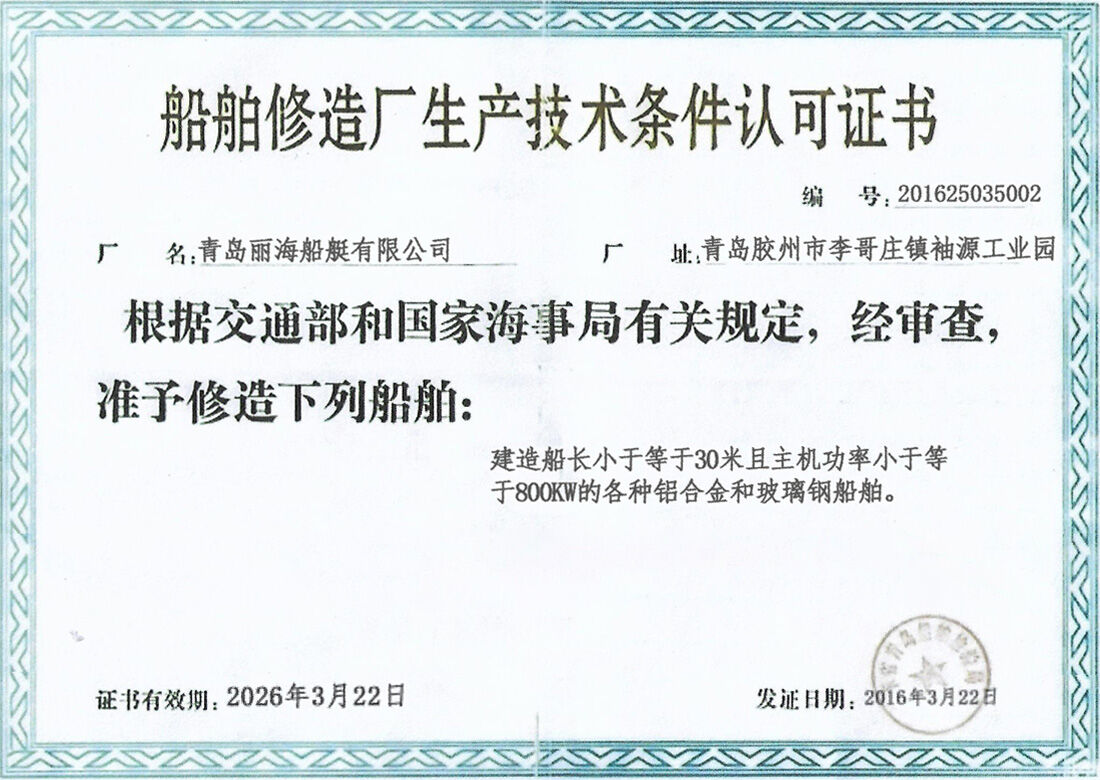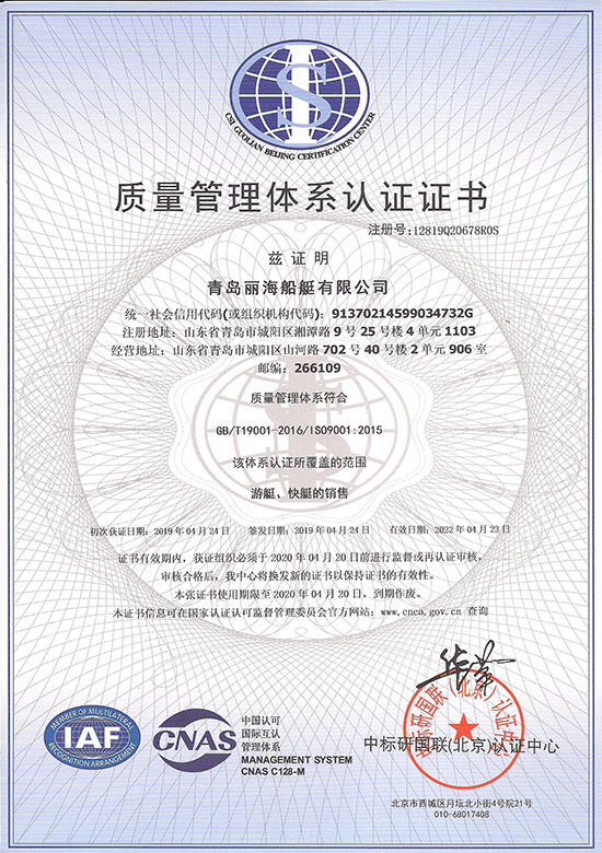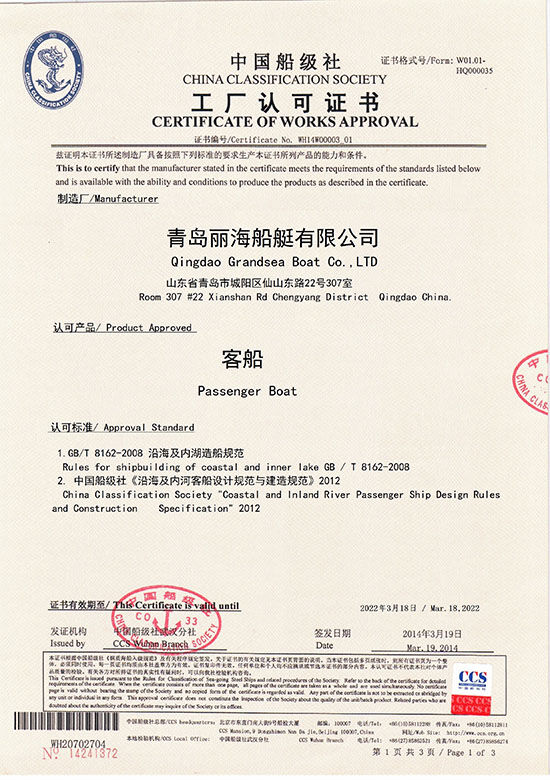 El astillero de Grandsea se concentraba en embarcaciones comerciales medianas y pequeñas, y el astillero ha sido calificado por CCS y una organización internacional, la certificación se adjunta a continuación: